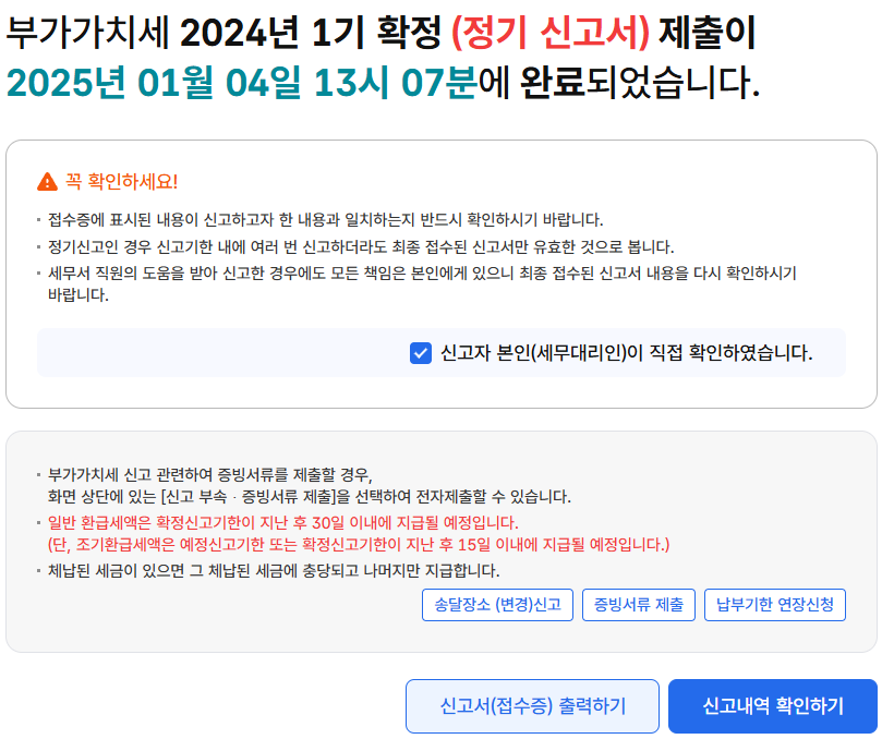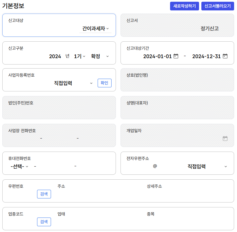 - 신고대상기간: 2024-01-01 ~ 2024-12-31 (※간이과세자는 1년을 과세기간으로 하여 신고합니다.)