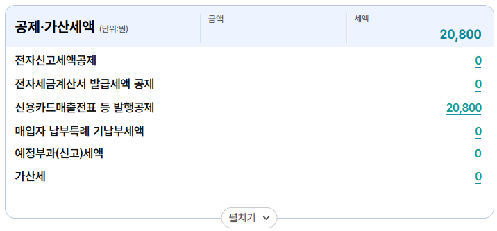 8. 매출금액에 따라 자동으로 계산된 공제세액을 확인합니다.