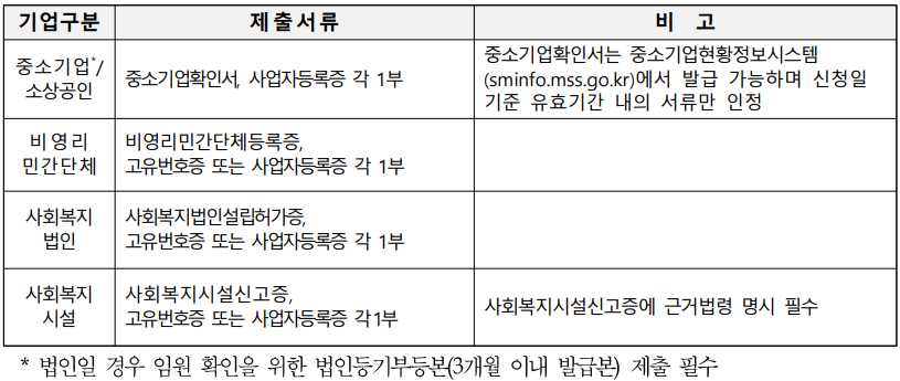 - 지원 대상: 중소기업, 소상공인, 비영리 민간단체, 사회복지법인·시설 근로자