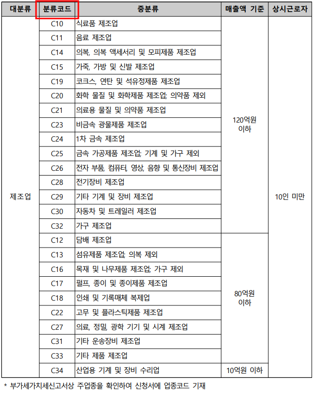 - 상시 근로자 10인 미만의 제조업 소공인(C10~C34 업종)